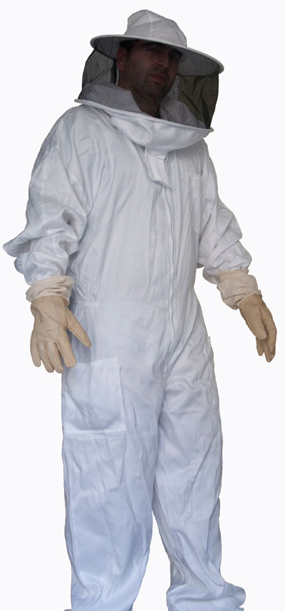Une pièce avec gants, haut de la tenue avec chapeau à cerceau de sécurité incorporé